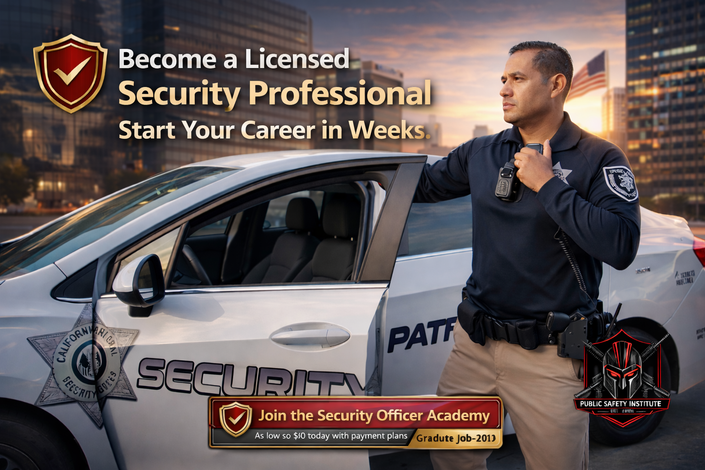 Public Safety Institute is a BSIS State-Licensed training academy and County-Approved CCW provider in Los Angeles and Kern Counties, preparing you for success at every level — from entry-level BSIS Security Guard certification to CCW, instructor development, and advanced firearms programs.